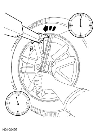Place the wheel and tire assembly on the turntable of the tire machine with the valve stem at the 11:30 position and the machine arm at the 12 o'clock position and dismount the outer bead from the wheel.