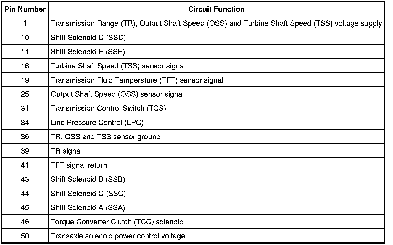 Solenoid Body Leadframe-to-Transmission Range (TR) Sensor Internal Circuit Diagram