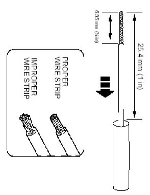 2. Strip 6.35mm (1/4 in) of insulation from each wire end, taking care not to nick or cut wire strands.
