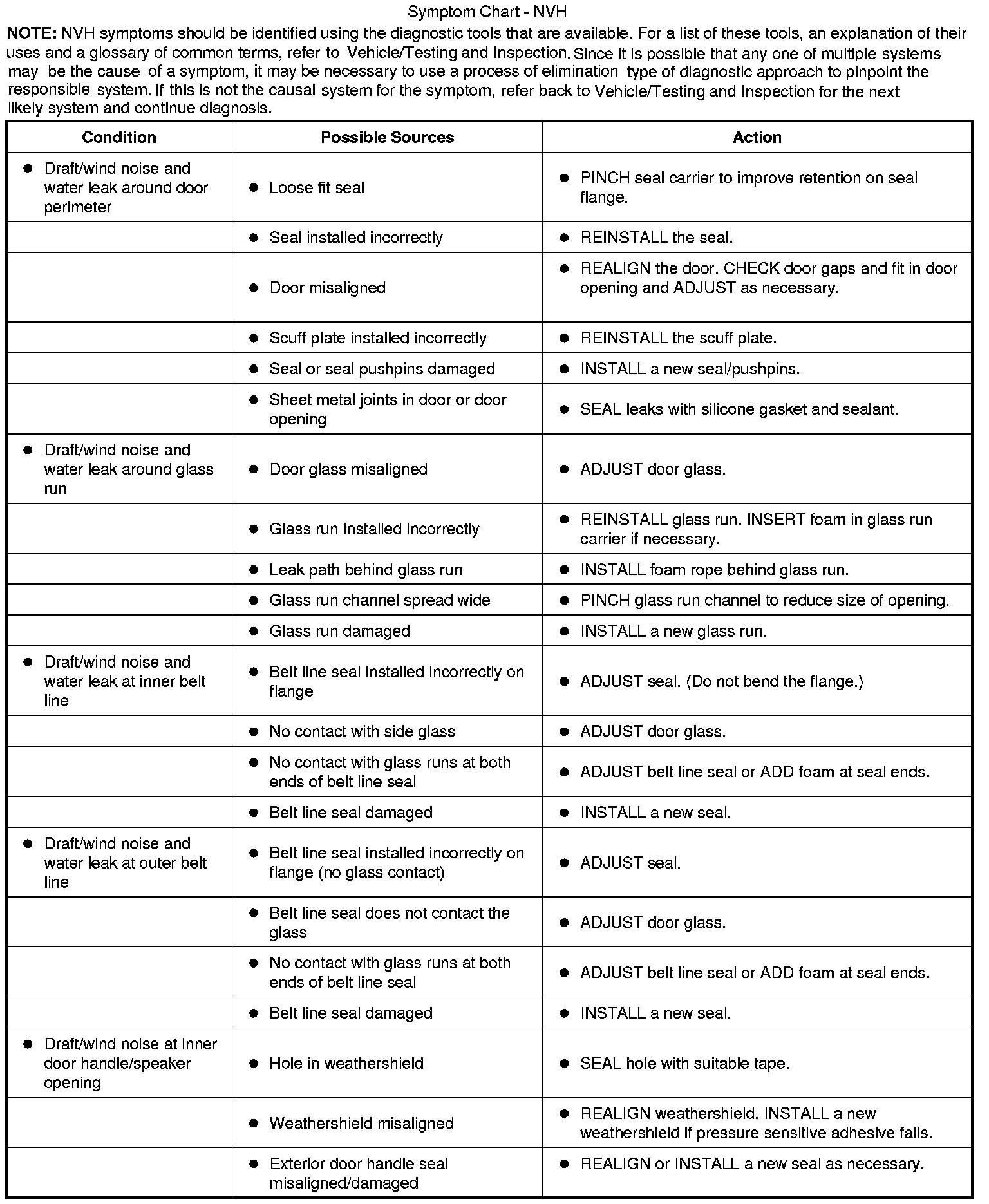 Symptom Chart - NVH