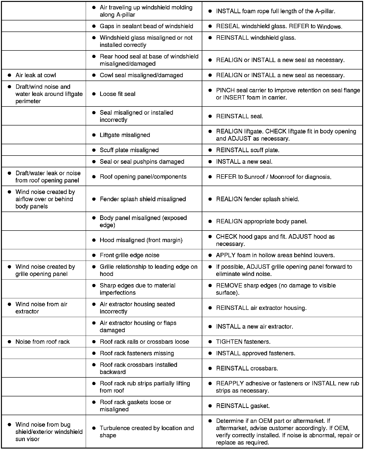 Symptom Chart - NVH (Part 2):