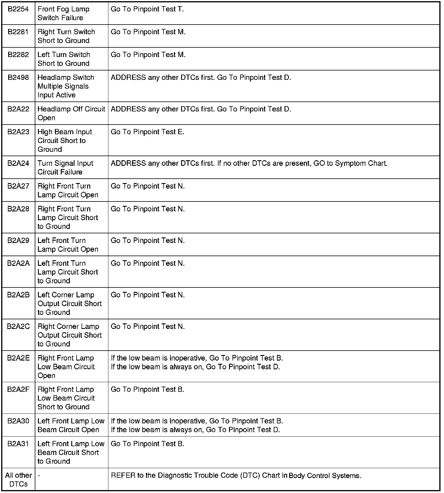 Diagnostic Trouble Code (DTC) Chart