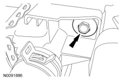6. Disconnect the horn assembly electrical connector and remove the horn assemble bracket bolt.