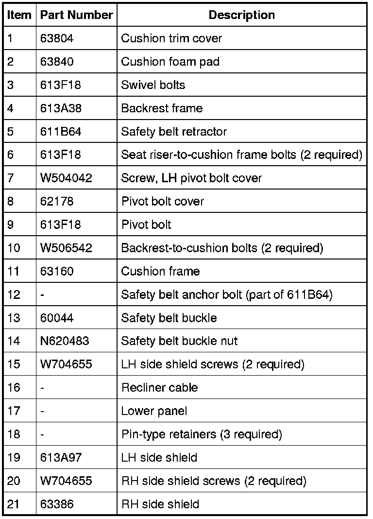 Seat - Exploded View, Second Row