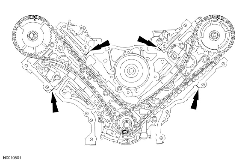 NOTICE: Timing chain procedures must be followed exactly or damage to valves and pistons may result.