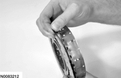 Using the Clutch Spring Compressor 307-525, slightly collapse the balance dam to install the retaining ring. Install the retaining ring.