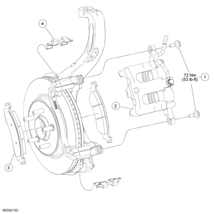 1. NOTE: One brake disc pad kit contains the pads and pad clips required for both sides.