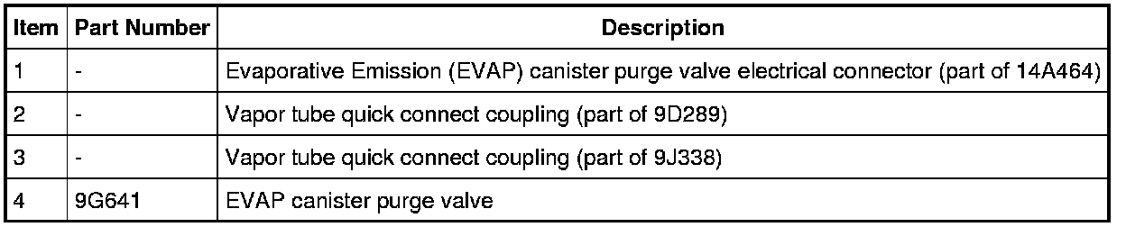 4. Disconnect the 2 vapor tube quick connect couplings from the EVAP canister purge valve.