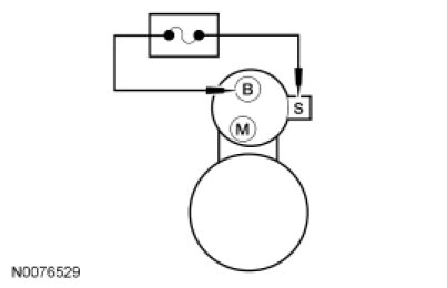 - Connect one end of a fused jumper wire to the B-terminal of the starter motor and momentarily connect the other end to the starter solenoid S-terminal.
