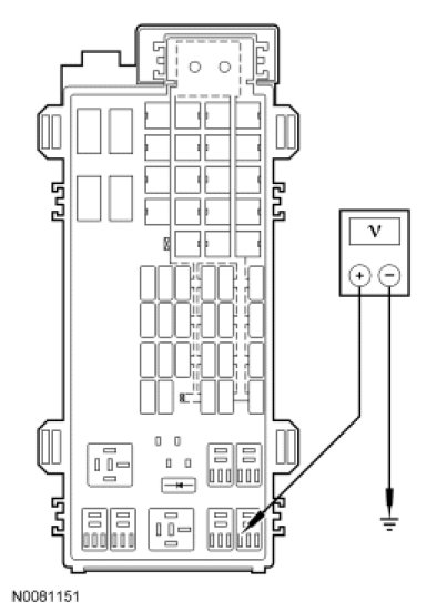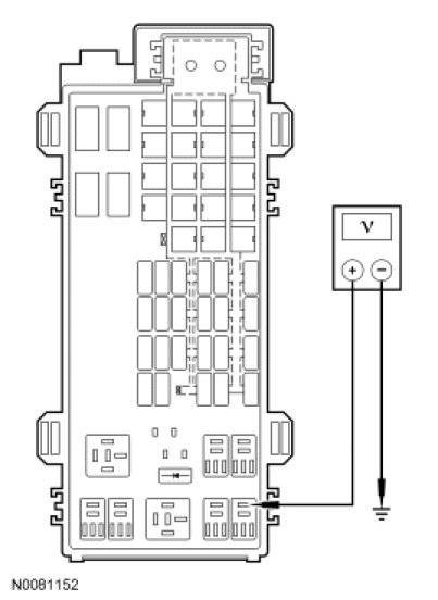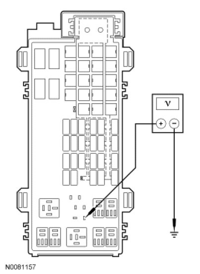 - Measure the voltage at ignition switch C250 pin 4, circuit SBP08 (VT/RD).