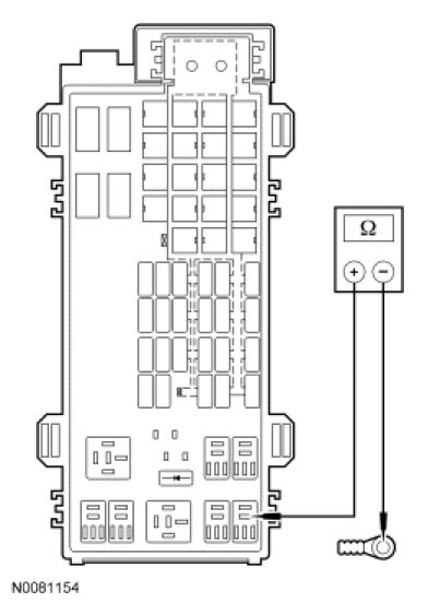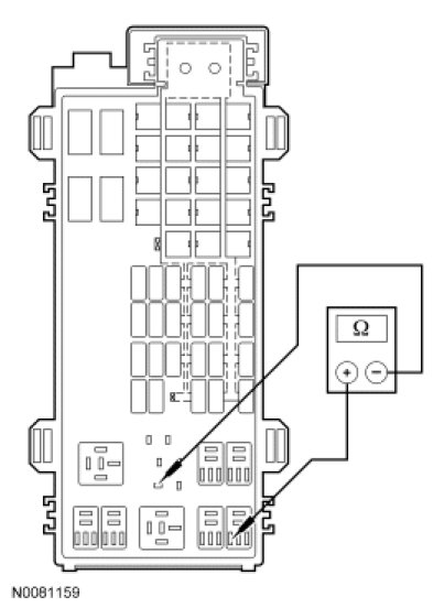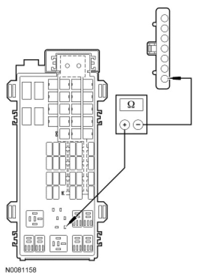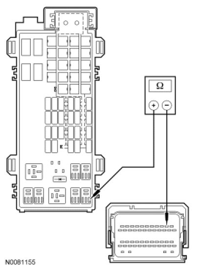 - Measure the resistance between ignition switch C250 pin 7, circuit CDC35 (BU/WH) and start diode input side, circuit CDC35 (BU/WH)
