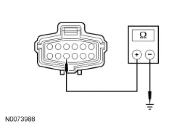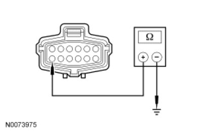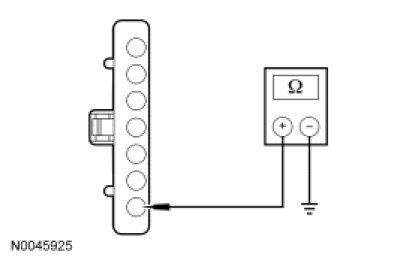 - Measure the resistance between ignition switch C250 pin 7, circuit CDC35 (BU/WH) and ground.