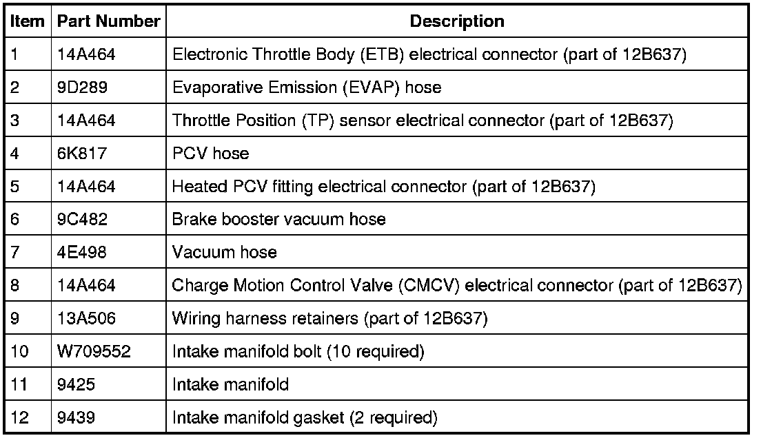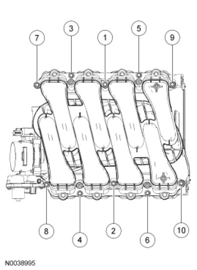 1. NOTICE: If the engine is repaired or replaced because of upper engine failure, typically including valve or piston damage, check the intake manifold for metal debris. If metal debris is found, install a new intake manifold. Failure to follow these instructions can result in engine damage.