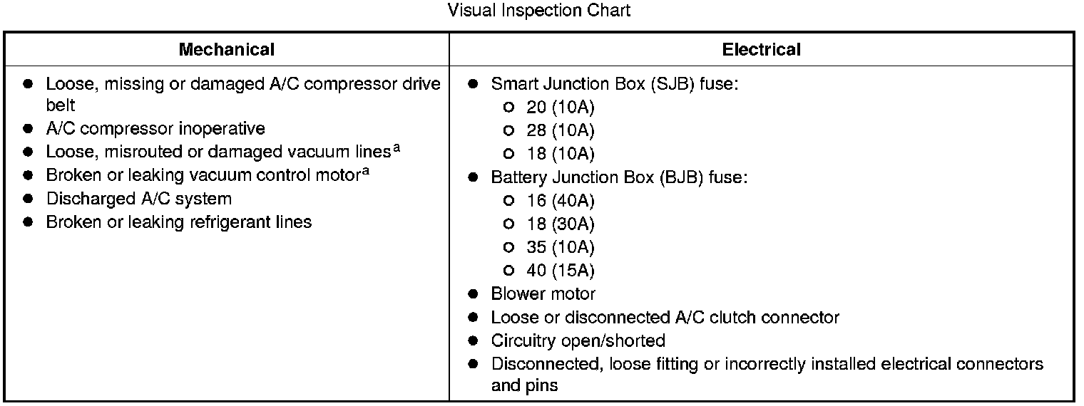 If any of the DATC DTCs retrieved are related to the concern, go to the HVAC Module - Dual Automatic Temperature Control (DATC) DTC Chart. If the PCM DTCs retrieved are related to the concern, go to the PCM DTC Chart. For all other DTCs, refer to Body Control Systems. PCM DTC Chart HVAC Module - Dual Automatic Temperature Control (DATC) DTC Chart