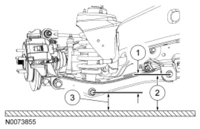1. Measure the distance between the flat level surface and the center of the lower arm inboard bolt (measurement 2).