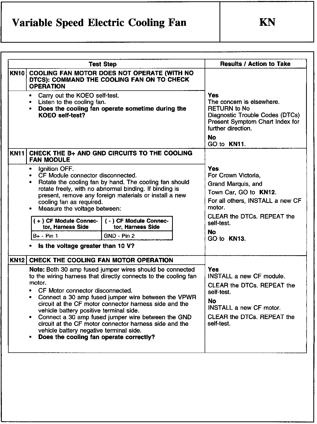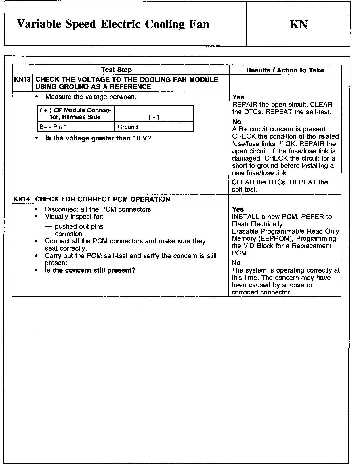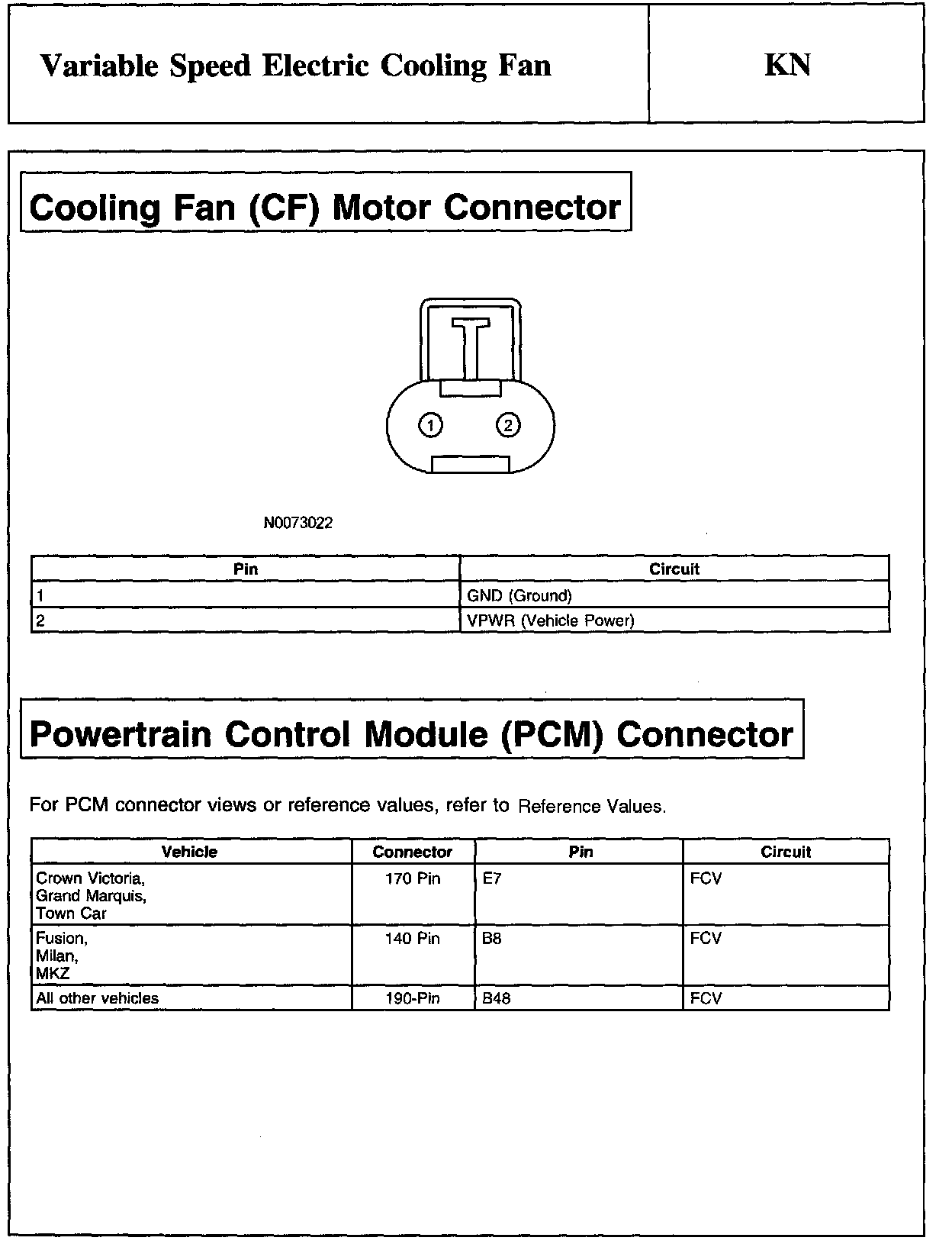 PINPOINT TEST KN: VARIABLE SPEED ELECTRIC COOLING FANWARNING And Cooling Fan Module Connector: