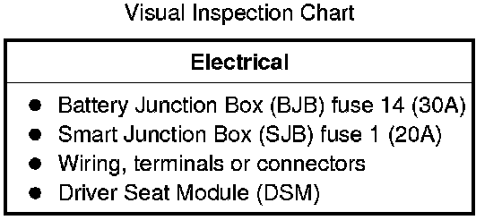 10. If no DTCs related to the concern are retrieved, GO to Symptom Chart. Driver Seat Module (DSM)