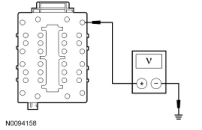 - Measure the voltage between the SJB C2280E-32, circuit SBB01 (RD), harness side and ground.