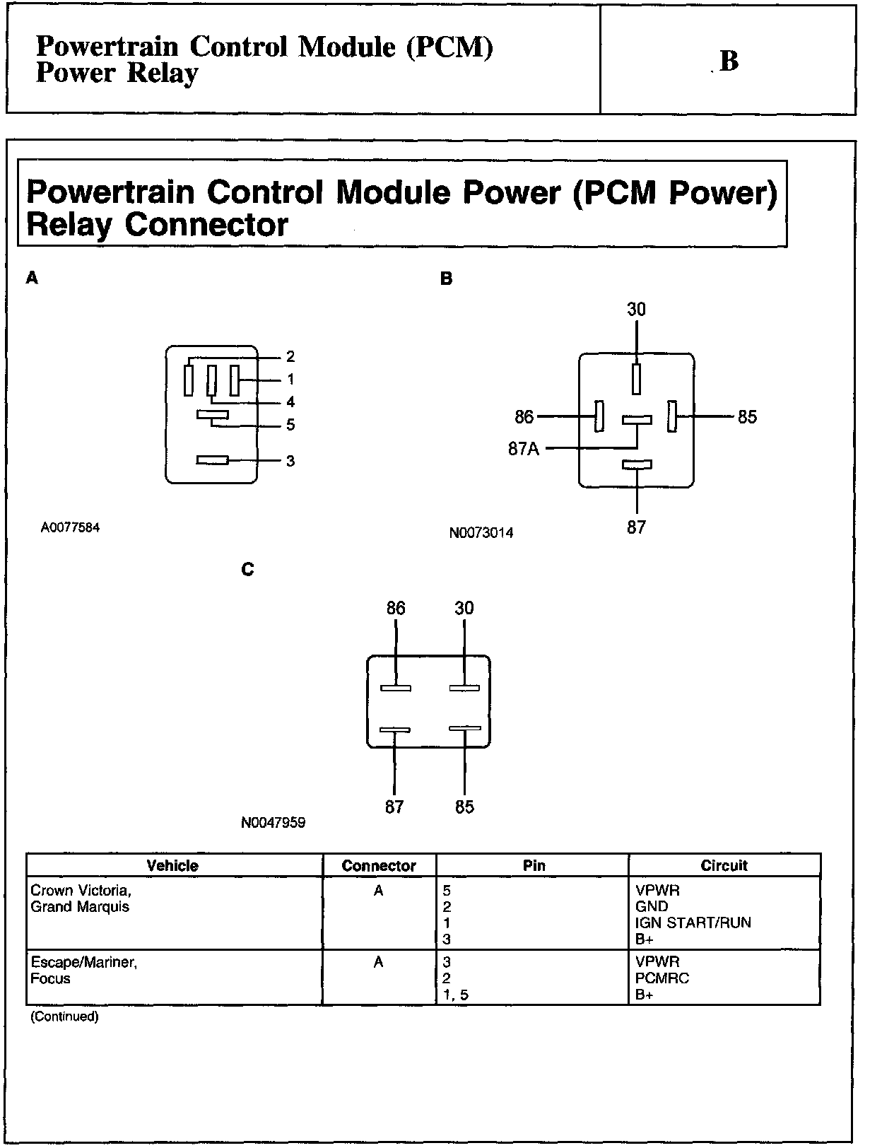 B - Powertrain Control Module (PCM) Power Relay