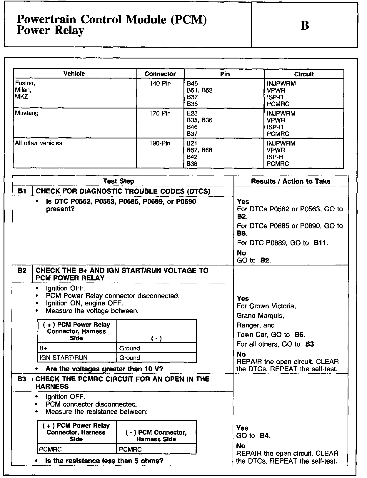 PINPOINT TEST B: POWERTRAIN CONTROL MODULE (PCM) POWER RELAY