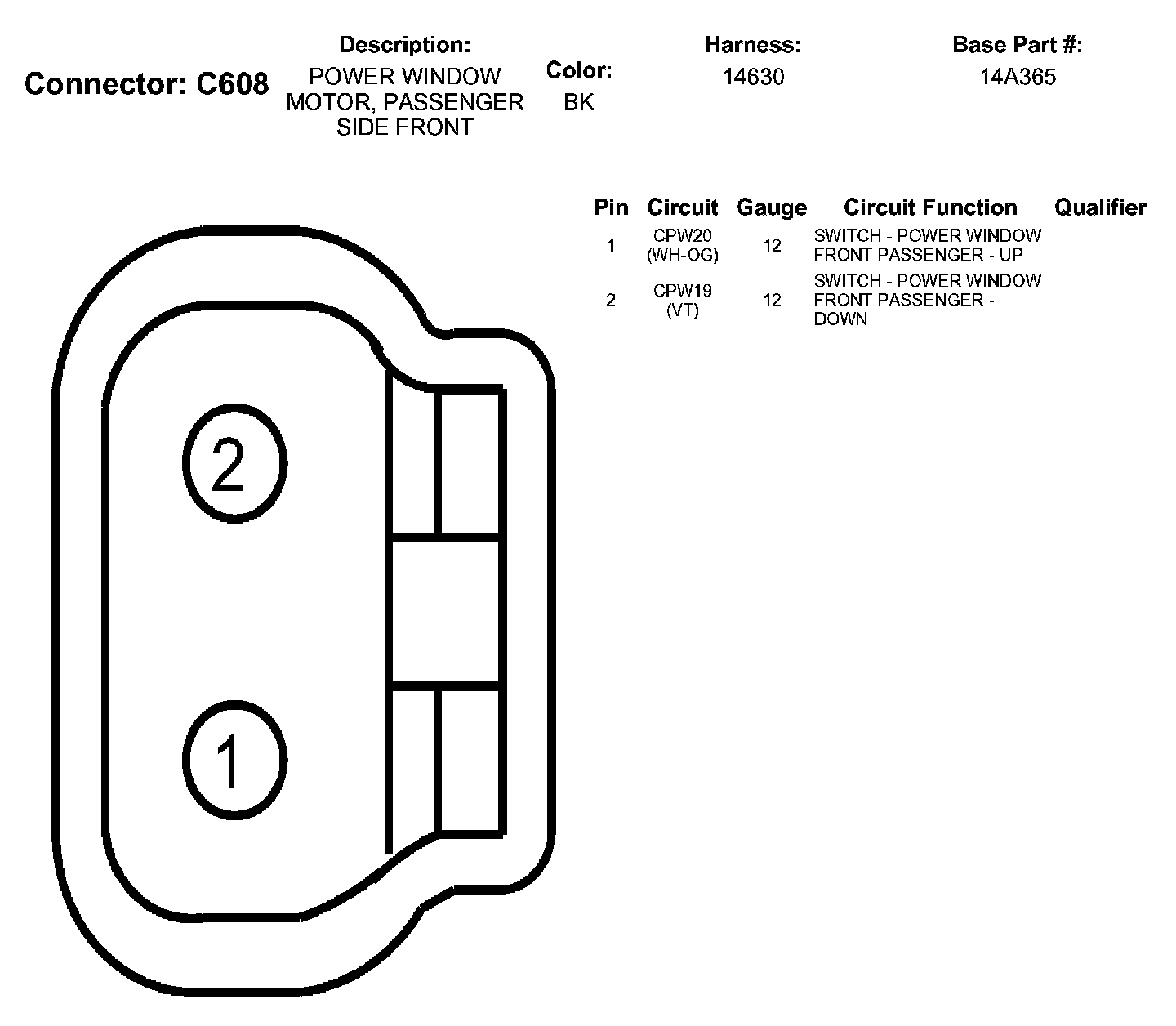 Power Window Motor, Passenger Side Front