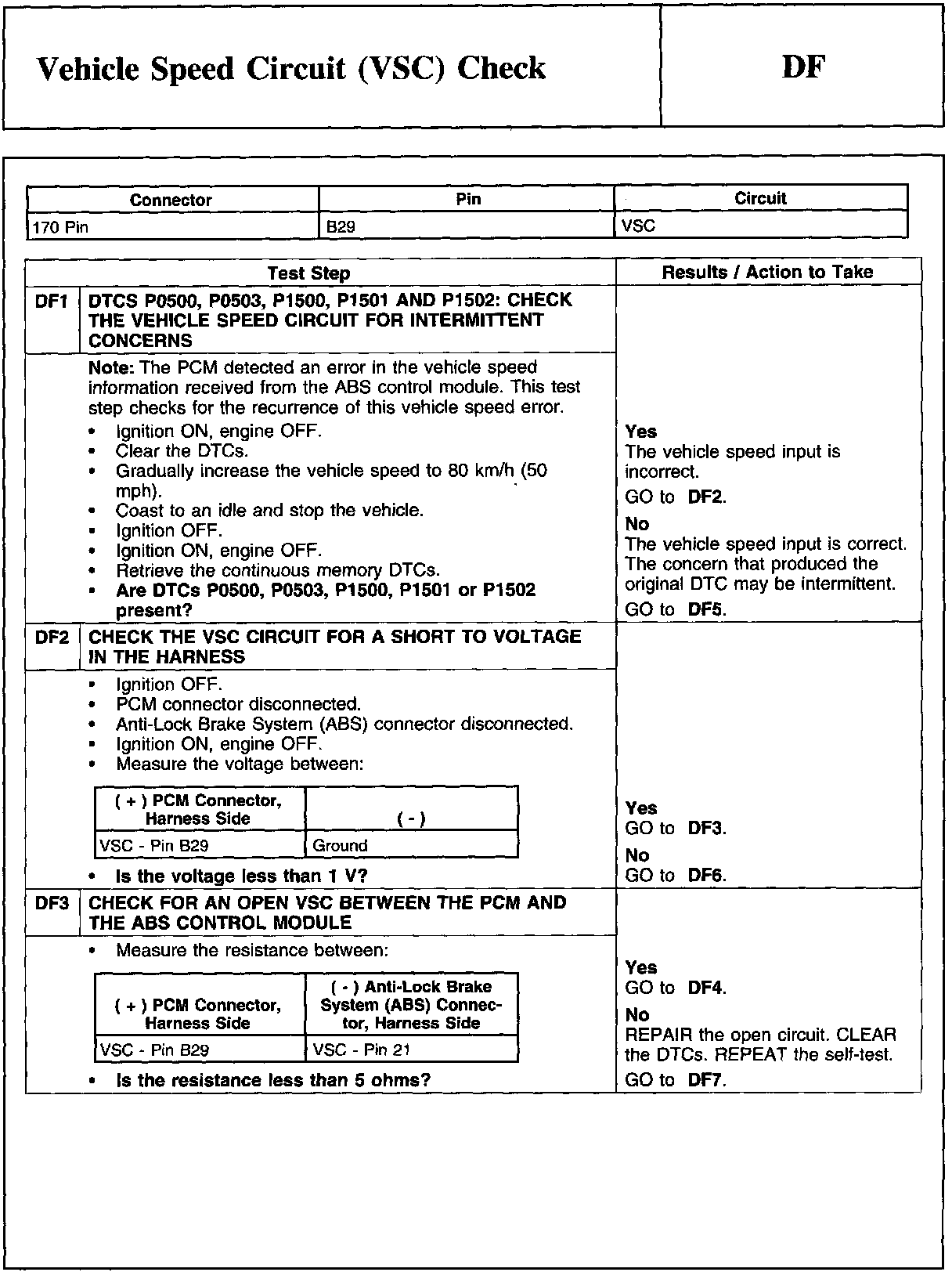 DF - Vehicle Speed Circuit (VSC) Check