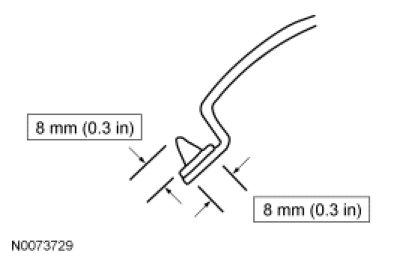 Using an appropriate tool, trim the urethane adhesive leaving a 1 mm to 2 mm (0.04 in to 0.08 in) base of original equipment urethane adhesive on the pinch weld.