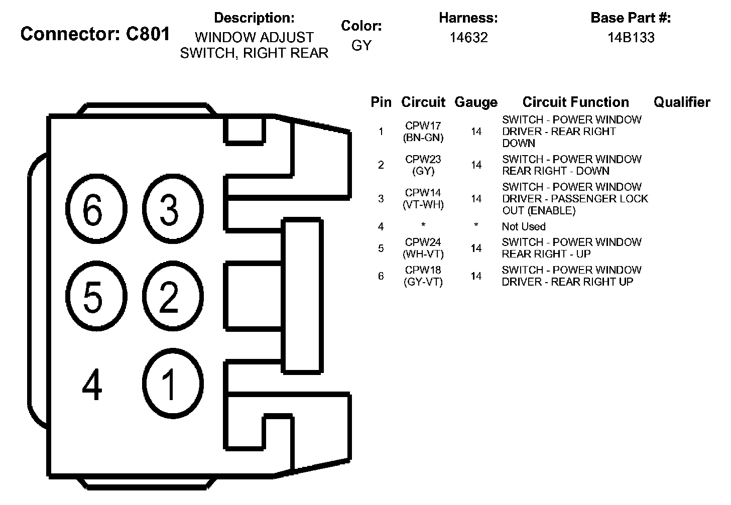 Window Adjust Switch, Right Rear