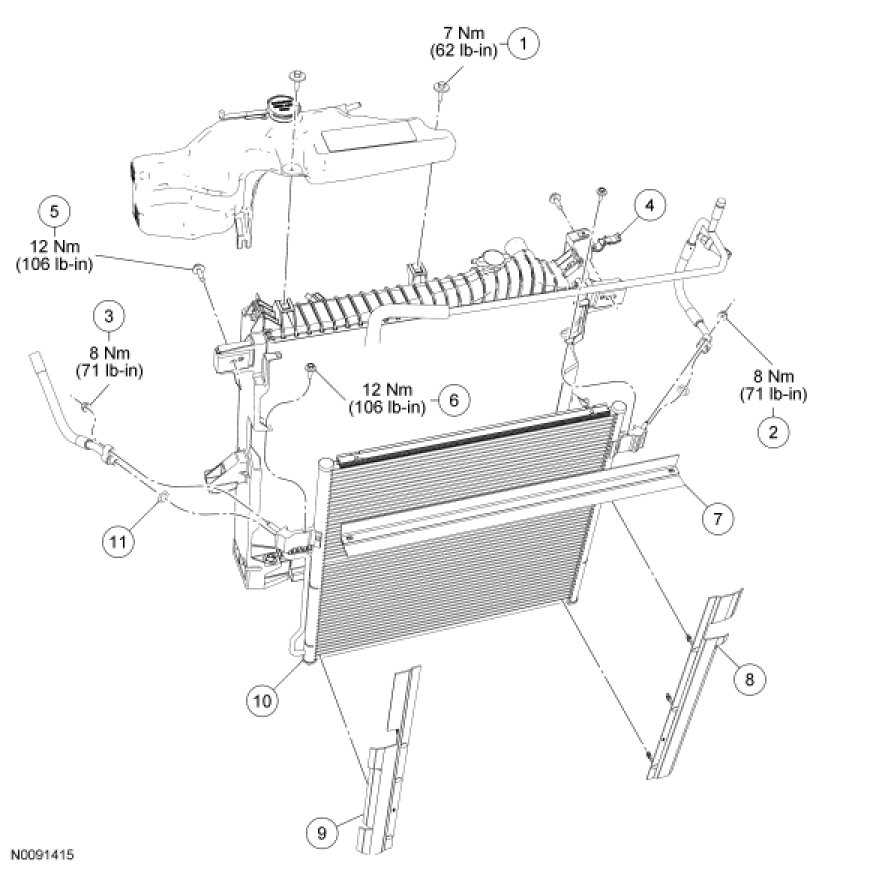 3. Remove the 2 coolant expansion tank bolts and position the coolant expansion tank aside.