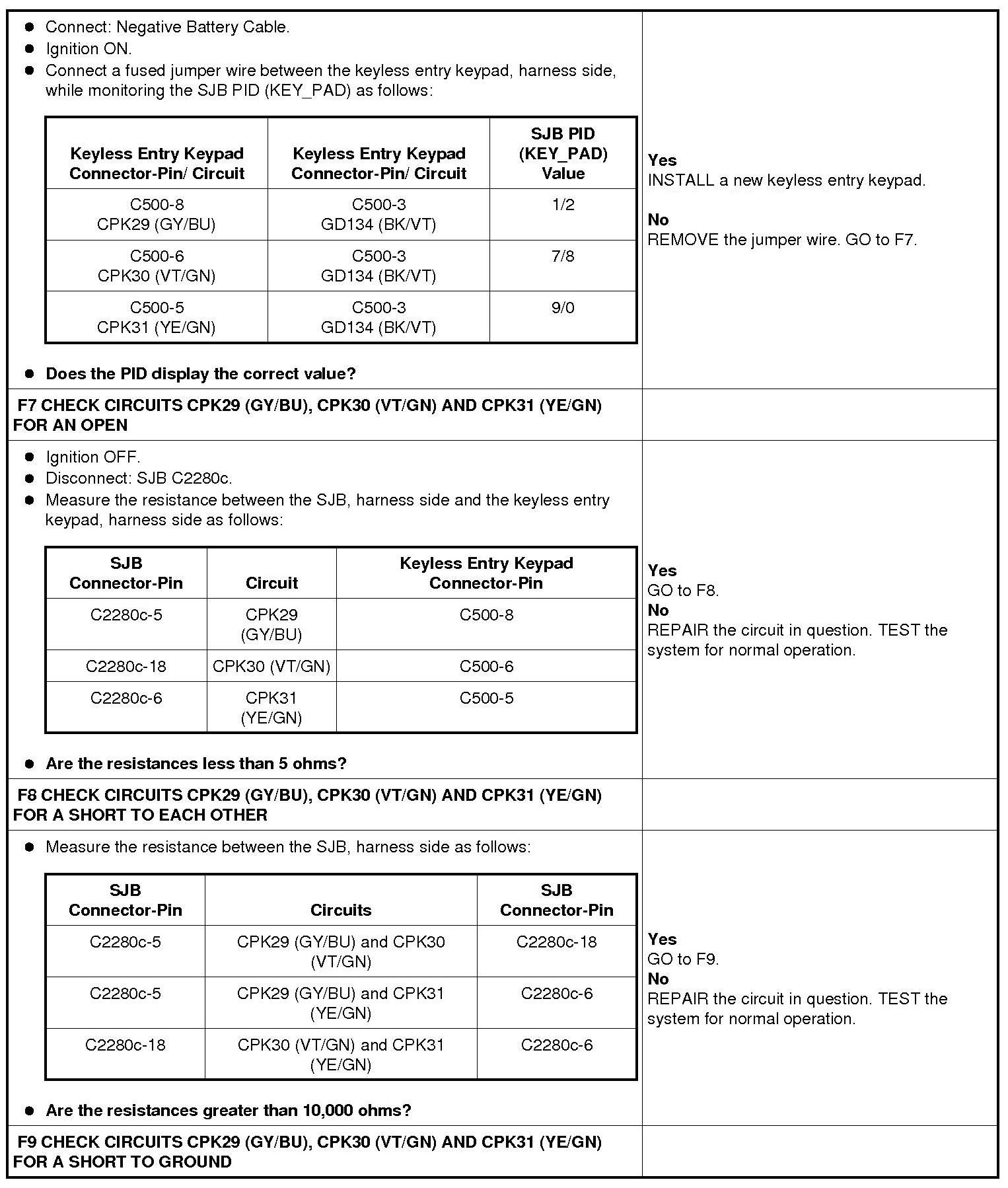 Pinpoint Test F: The Doors Do Not Lock/Unlock Using The Keyless Entry Keypad