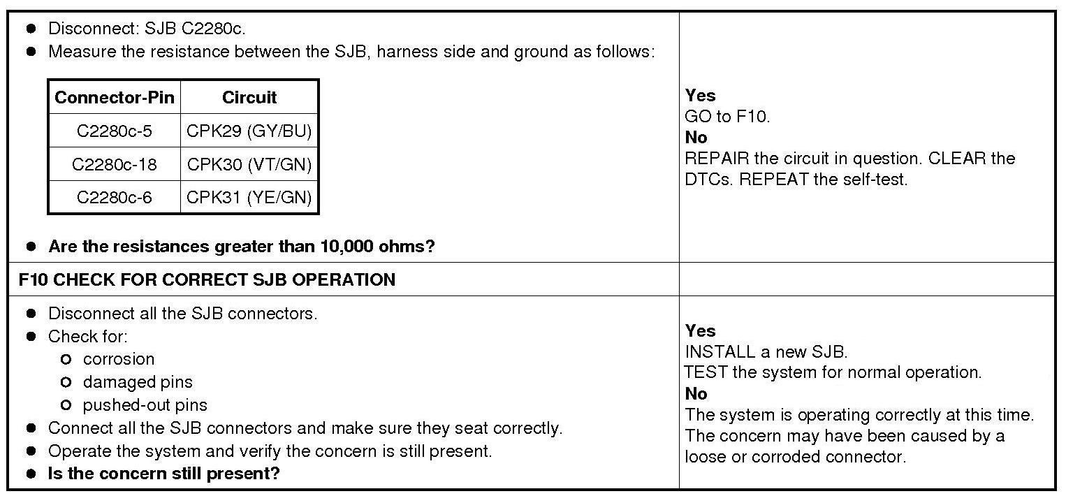 - DTC B2A26 (Keypad Switch Circuit Failure) - a continuous and on-demand DTC that sets when the SJB detects a short to ground on any of the keyless entry keypad input circuits CPK29 (GY/BU), CPK30 (VT/GN) or CPK31 (YE/GN). The DTC is also set if any of the keyless entry keypad buttons are actuated for longer than 2 minutes.