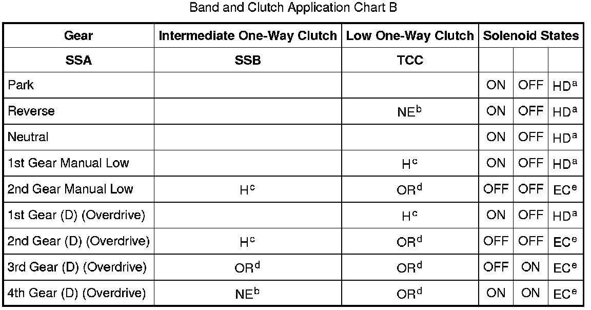 Band And Clutch Application Chart B: