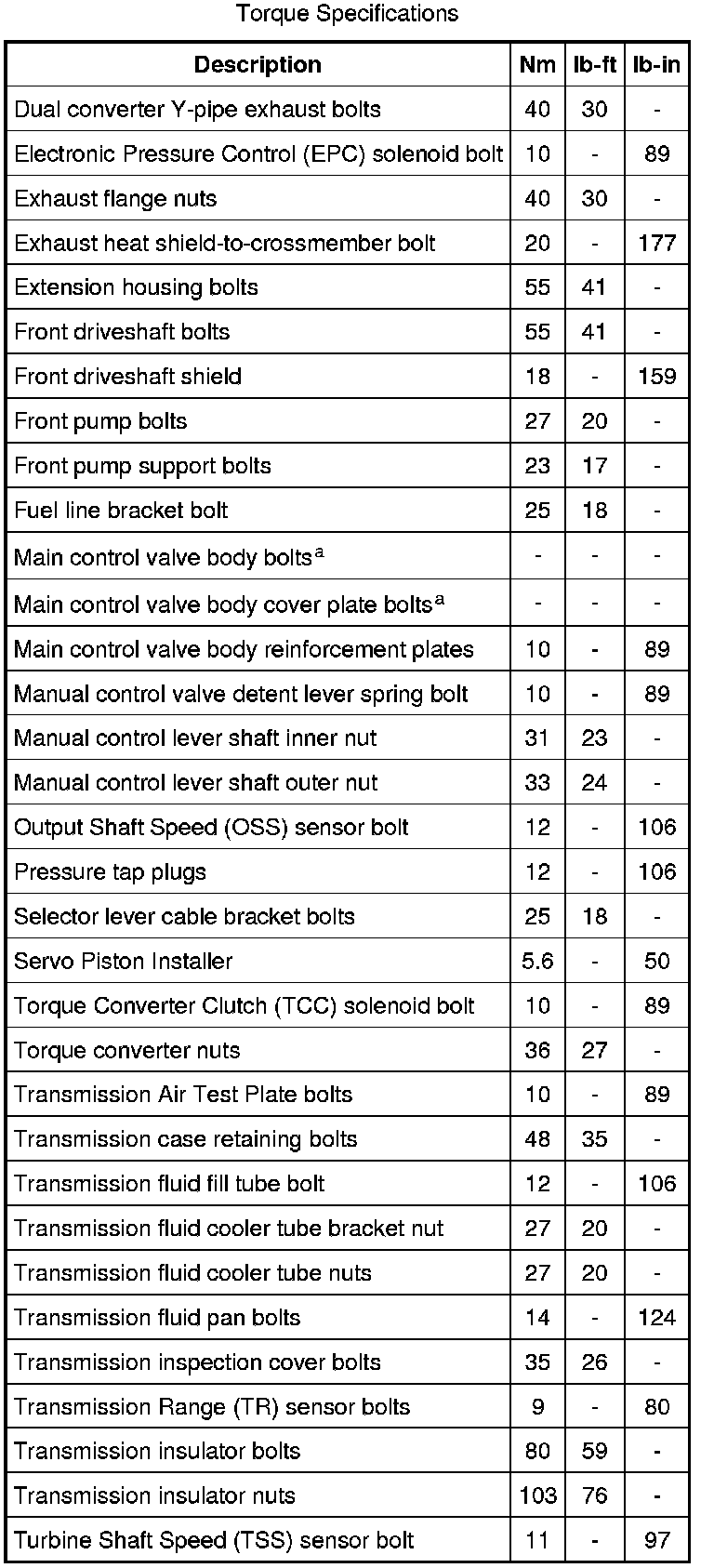 Torque Specifications:
