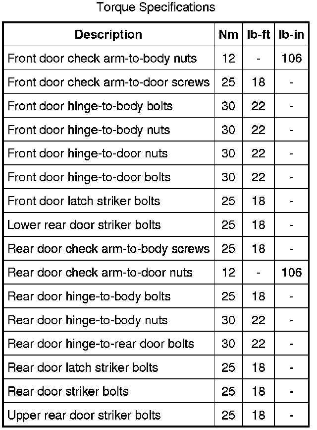 Torque Specifications: