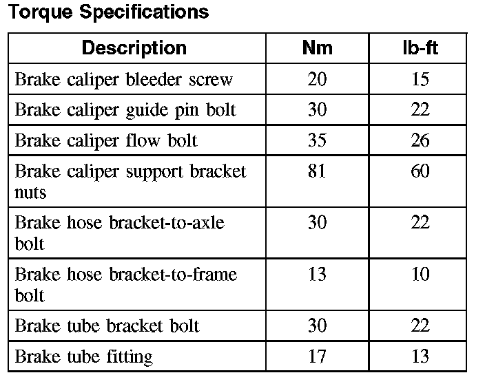 Torque Specifications, Rear