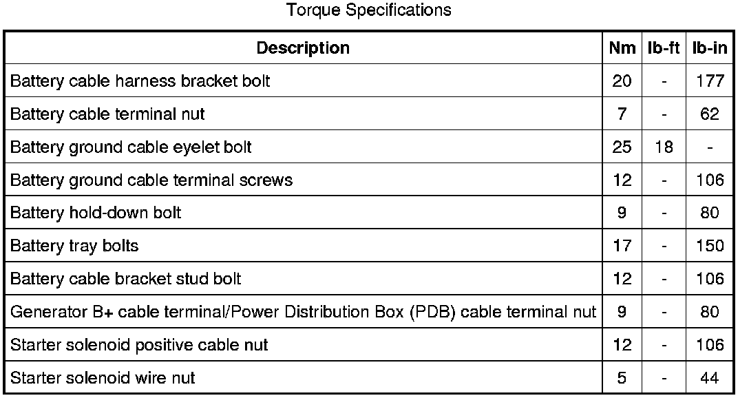Torque Specifications: