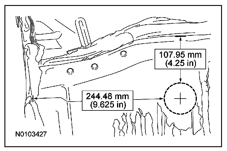 - Measure 244.48 mm (9.625 in) from the body side-to-floor pan seam towards the inside of the vehicle.