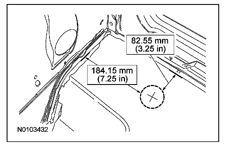 - Measure 184.15 mm (7.25 in) from the body side-to-floor pan seam towards the interior of the vehicle.