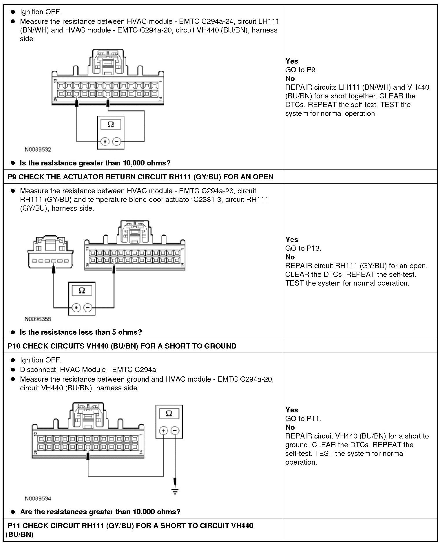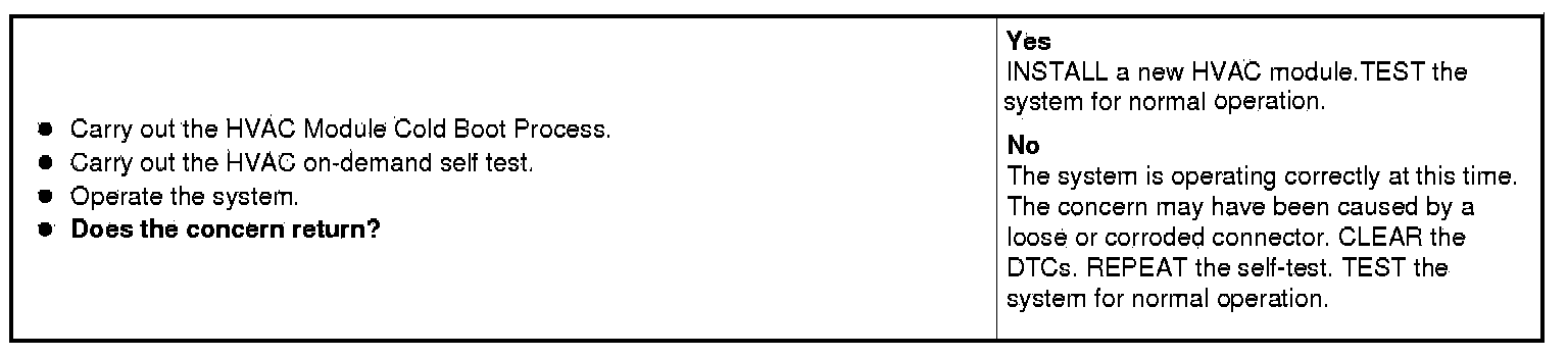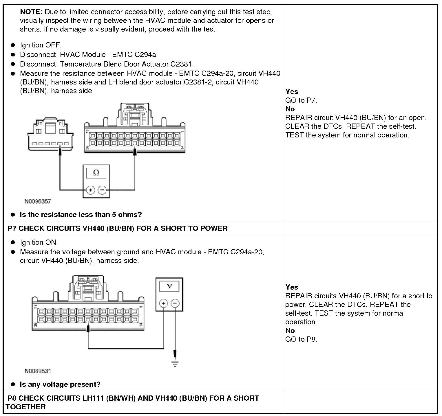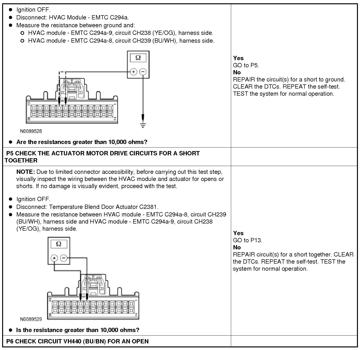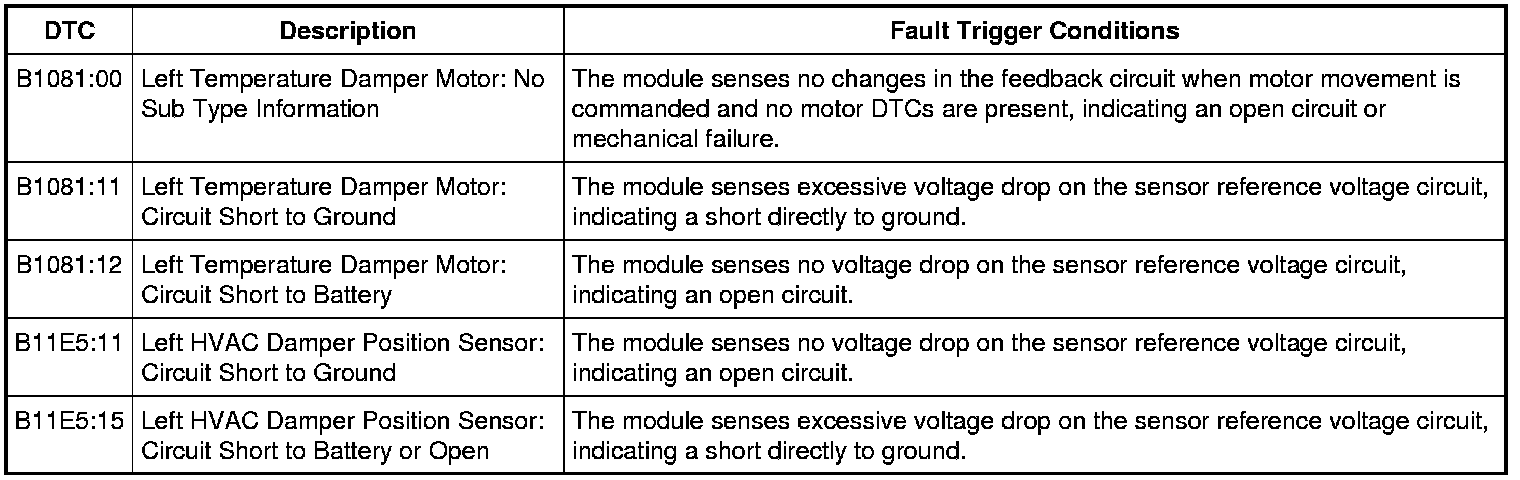 The temperature blend door actuator feedback resistor are supplied a ground from the HVAC module by the temperature blend door actuator return circuit and a 5-volt reference voltage on the temperature blend door actuator reference circuit. The HVAC module reads the voltage on the temperature blend door actuator feedback circuit to determine the temperature blend door actuator position by the position of the actuator feedback resistor wiper arm.