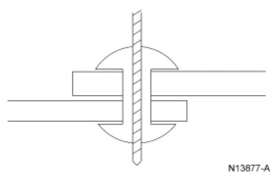 3. Replace the rivets that were removed with the next larger size bolts. Insert the bolts, nuts and washer that are Property Class 9.8 metric (Grade 8) in the drilled holes.
