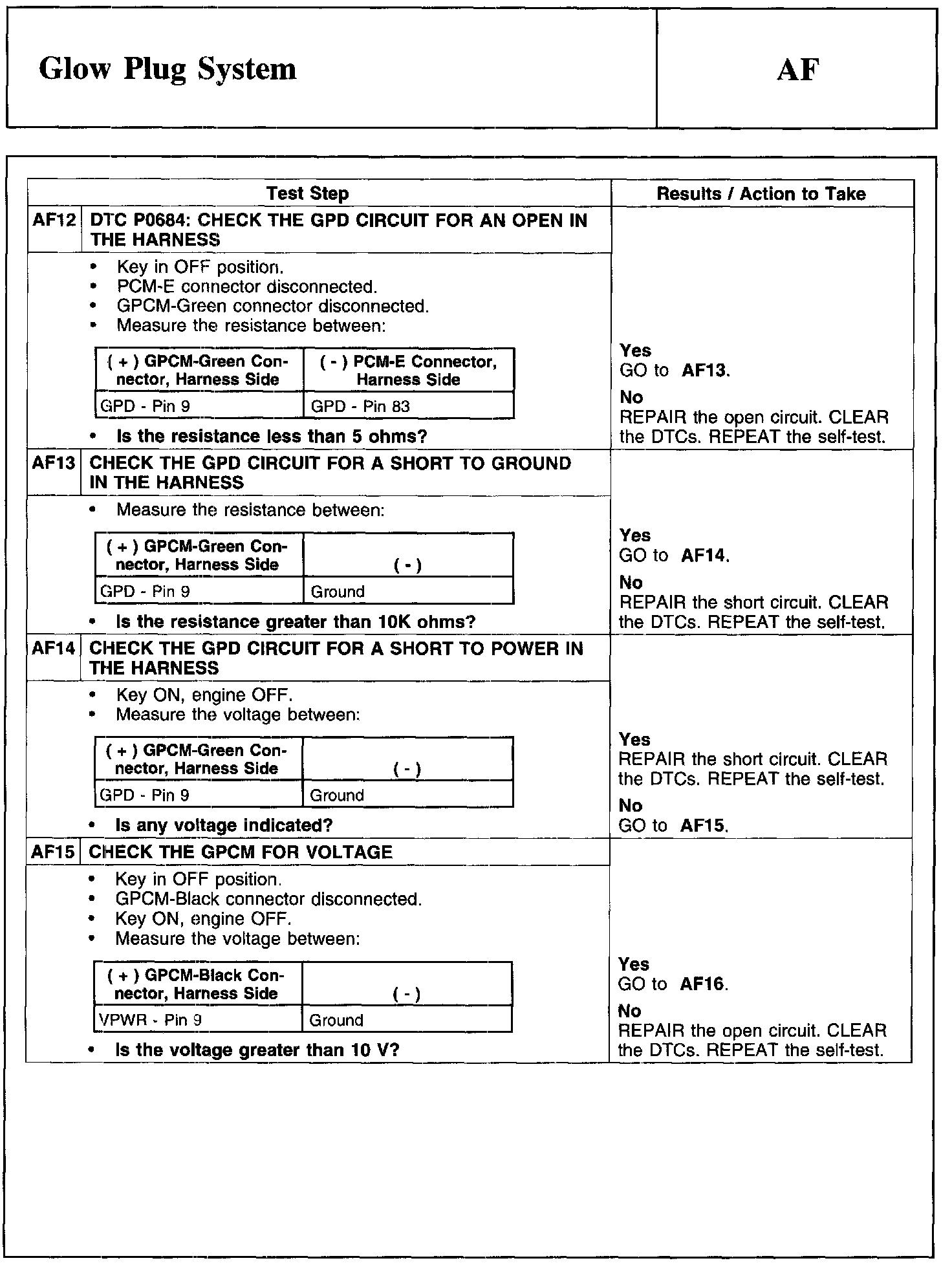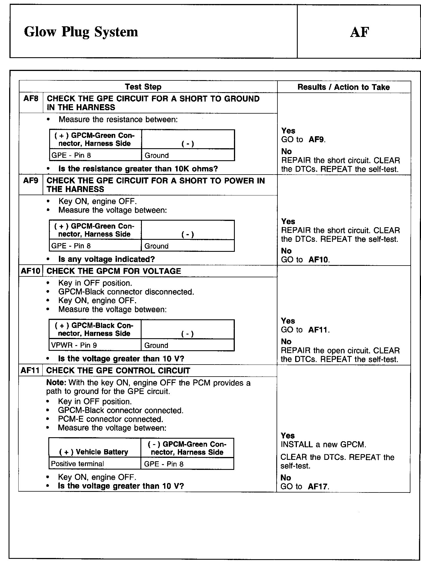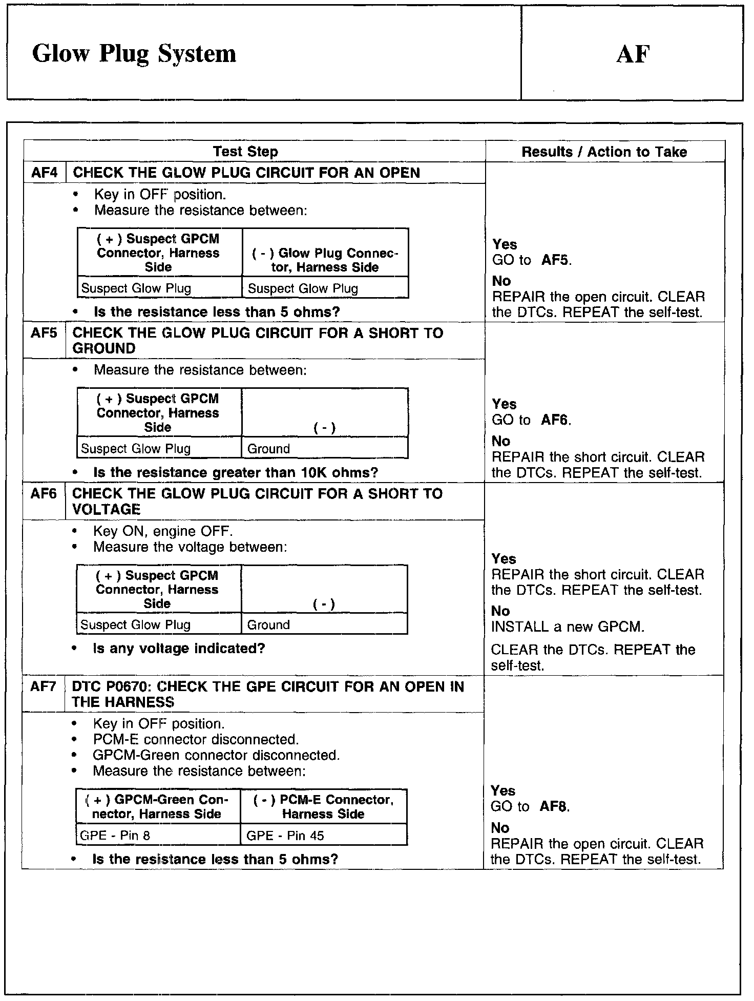 PINPOINT TEST AF: GLOW PLUG SYSTEMNotice And Note: