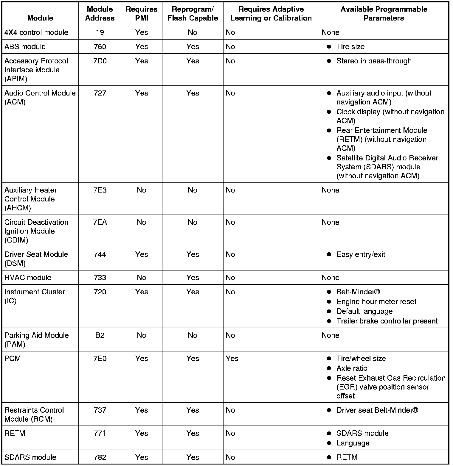 Programmable parameters are customer preference items that may be modified by the dealer via scan tool or in some cases modified by the customer following a procedure listed in the vehicle Owner's Literature. While many configuration options may exist for a module, only a few of these options are programmable parameters.