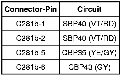 - Measure the resistance between the 4X4 control module C281a-10, circuit VDB10 (GY), harness side and the Data Link Connector (DLC) C251-7, circuit VDB10 (GY), harness side.