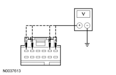 - Measure the voltage between the 4X4 control module, harness side and ground as follows: