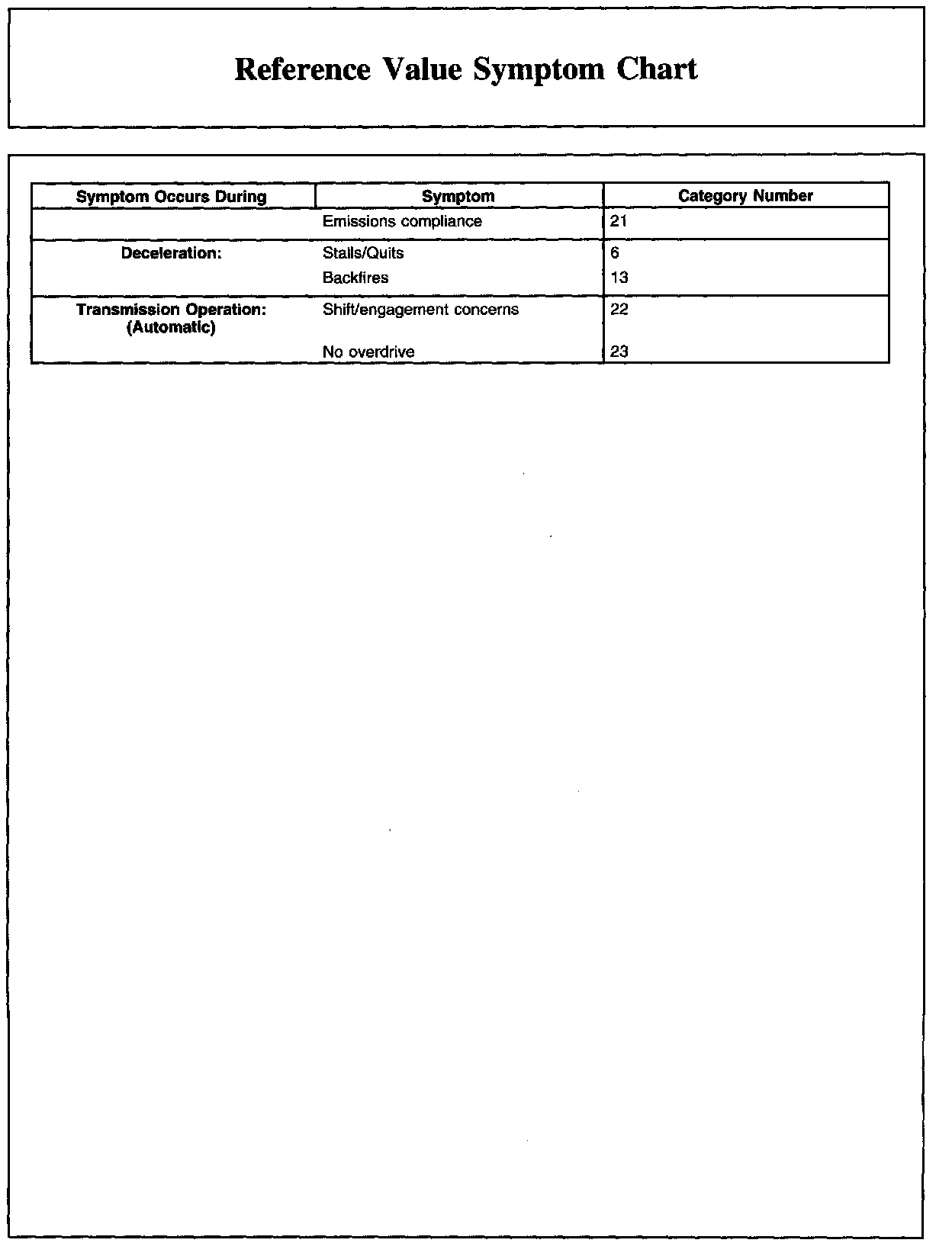 Reference Value Symptom Chart