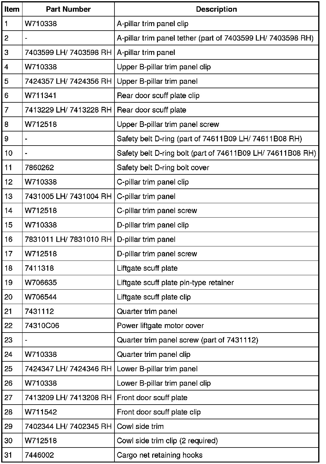 Interior Trim - Exploded View
