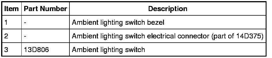 1. NOTE: The ambient lighting switch bezel is removed by grasping the sides and pulling upward.