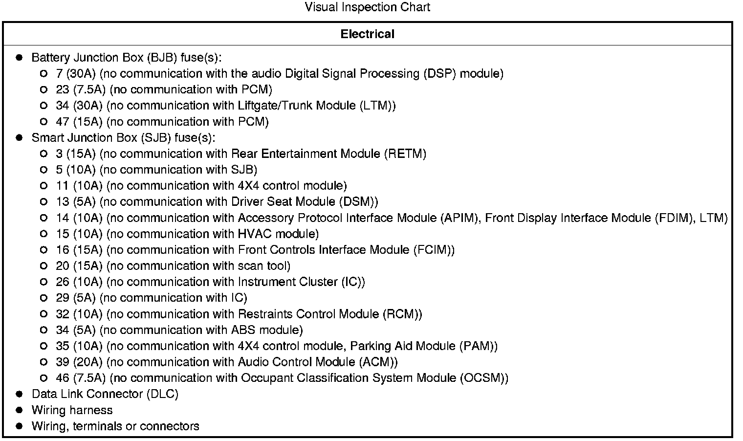 - If a module fails to communicate during the network test, GO to Symptom Chart. Symptom Related Diagnostic Procedures