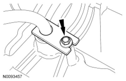 18. Position the transmission fluid cooler tube in place and install a new bolt.