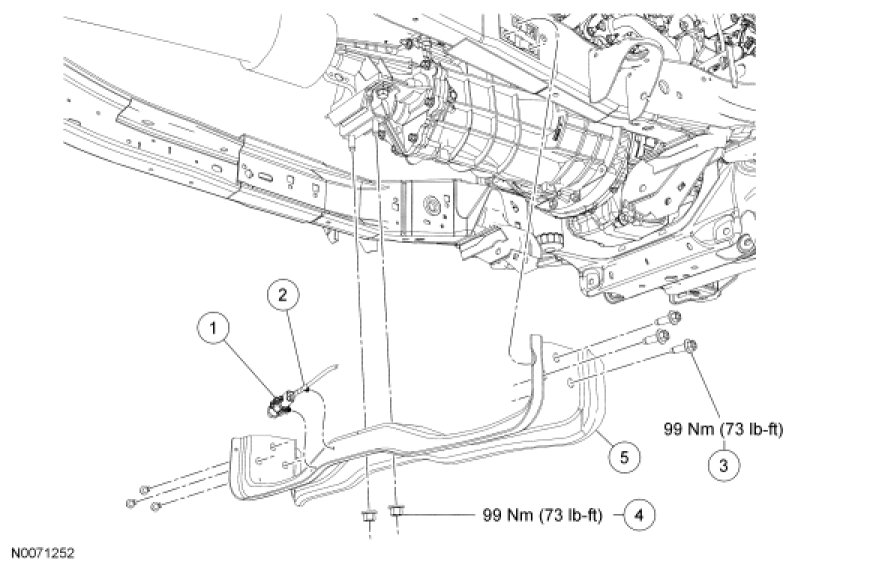 12. Remove the 6 crossmember-to-frame bolts (3 on each side).